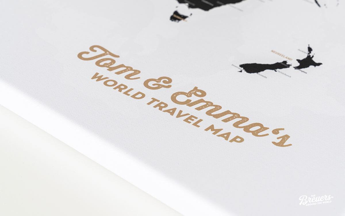 To give the world map a personal touch, we offer four different personalisations. This way you can make your map unique. And best of all, personalisation is free!