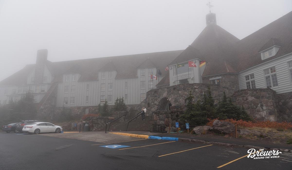 Just visible in the fog: the "Timberline Lodge", setting in Stephen King's story "The Shining".